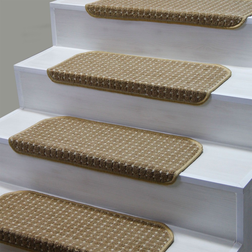 Bej Renk Kare Model Bukle Halıdan Demonte Basamak Paspasi