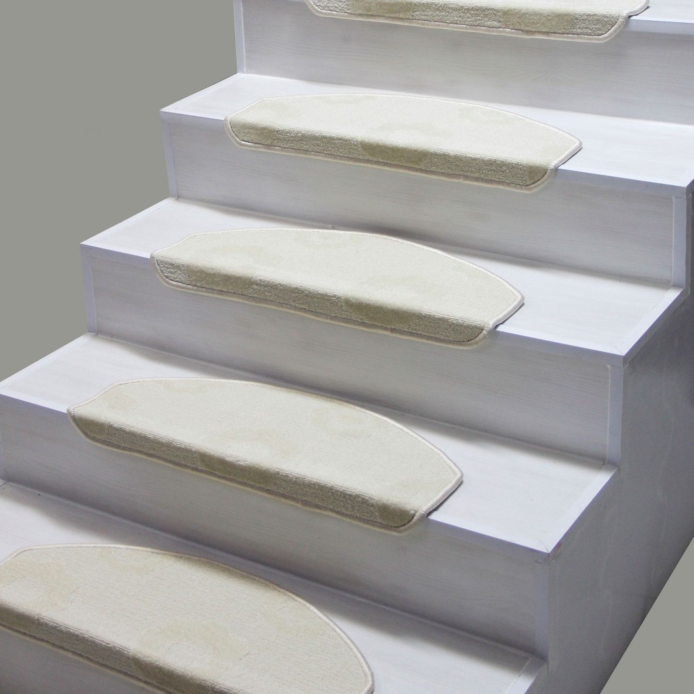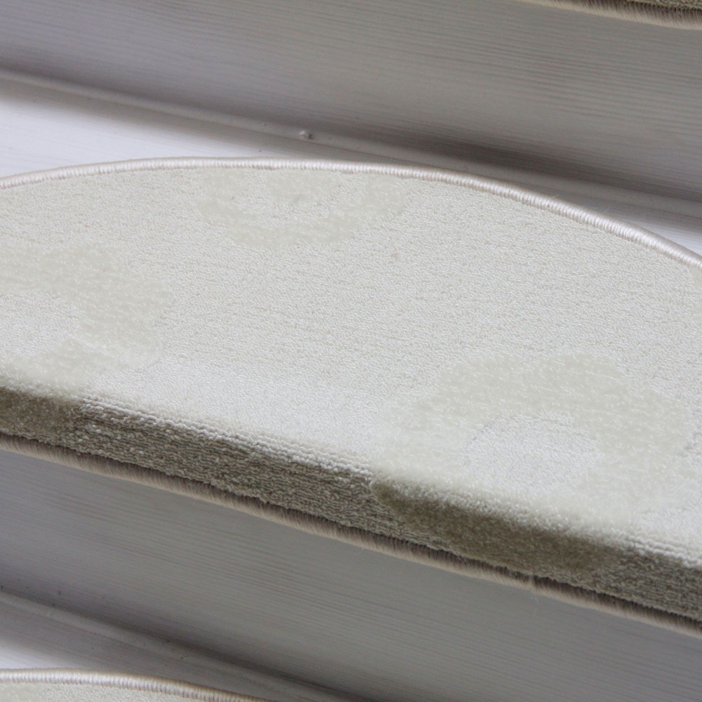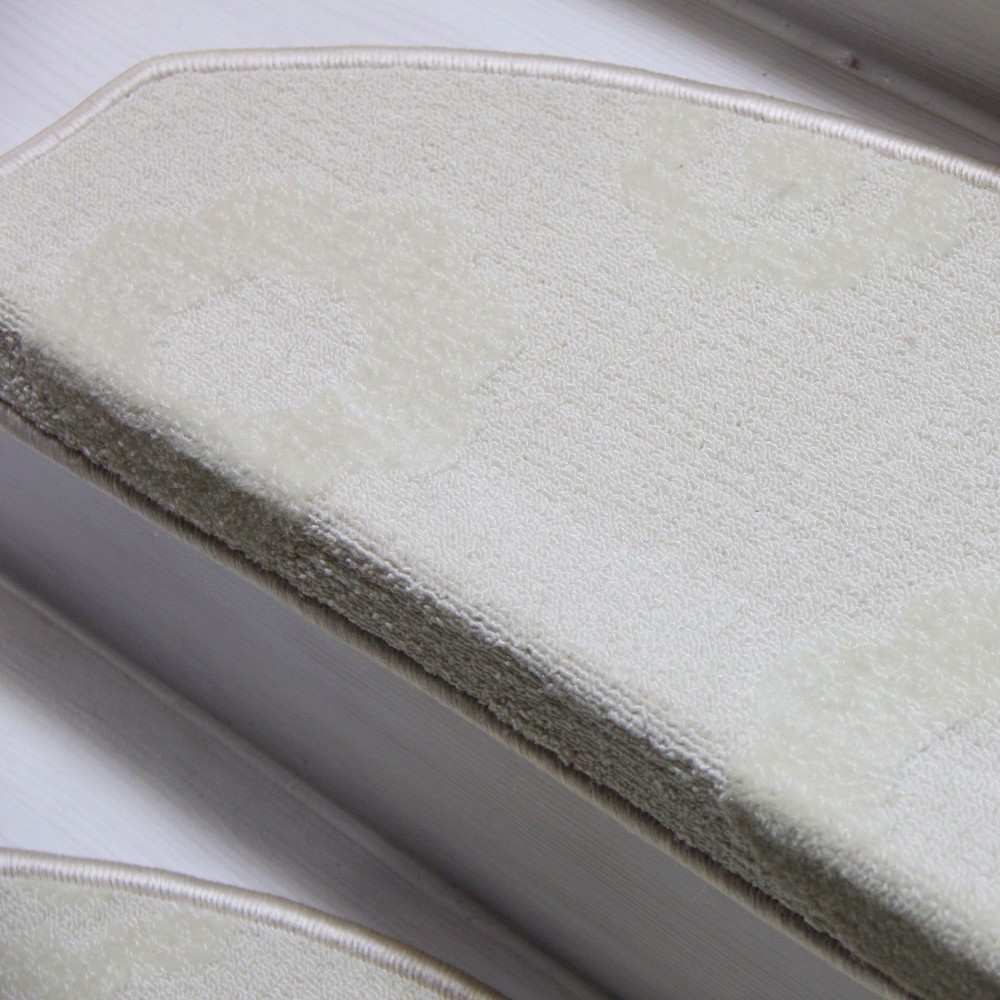 Beyaz Renk Oval Desenli Model Bukle Halıdan Demonte Basamak Paspasi