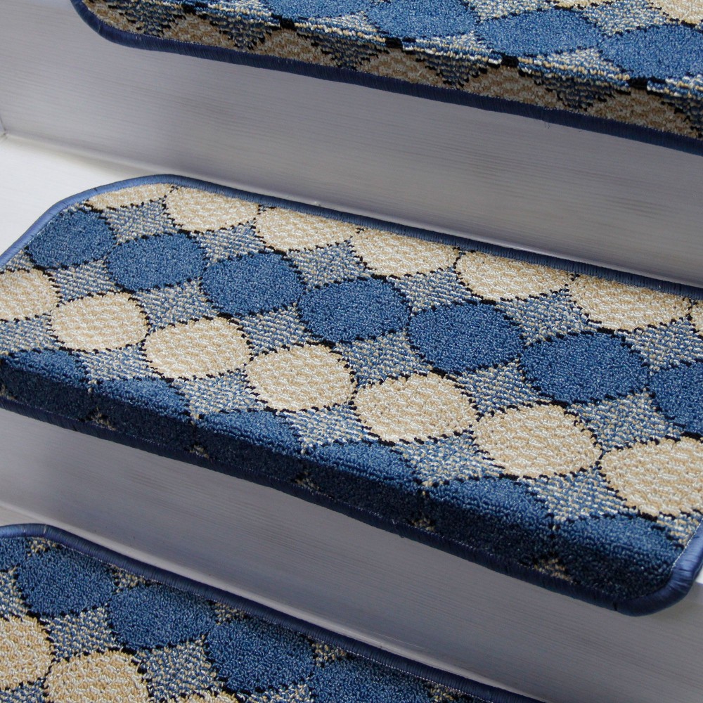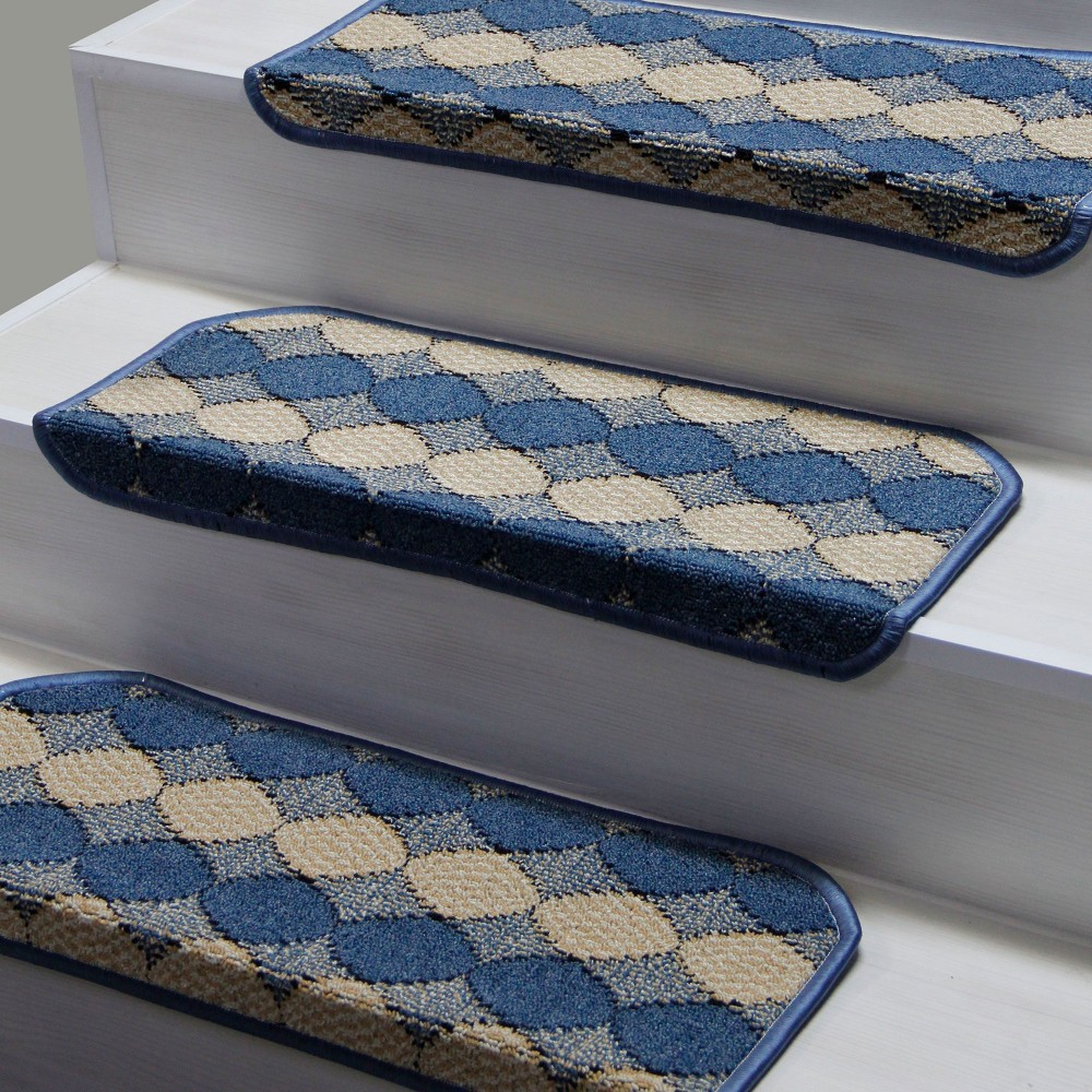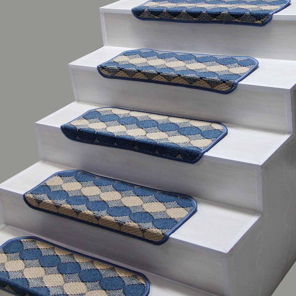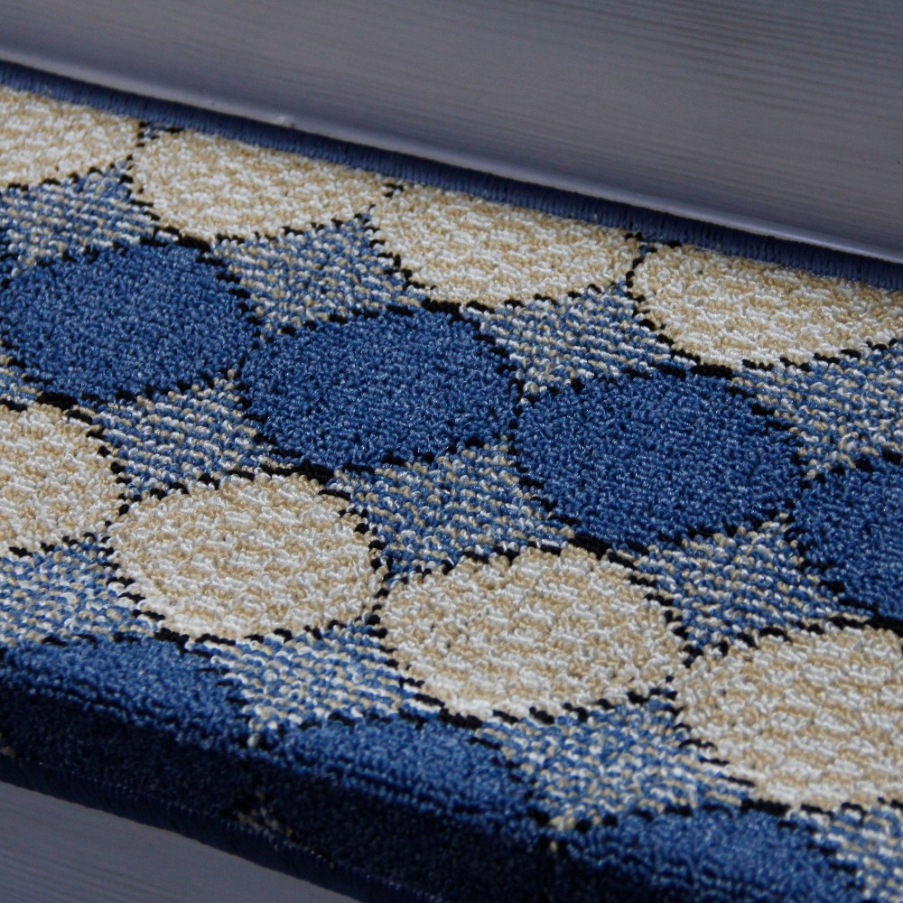 Mavi Renk Kare Desenli Model Bukle Halıdan Demonte Basamak Paspasi