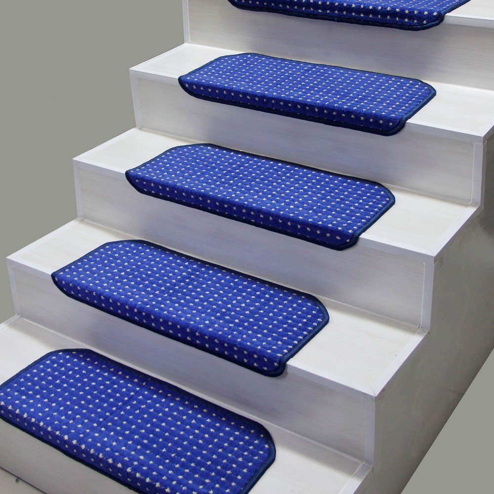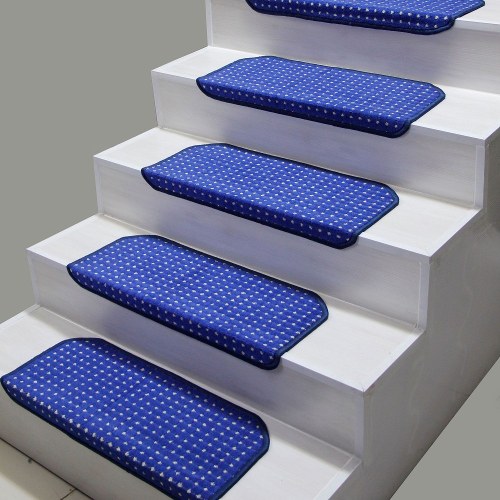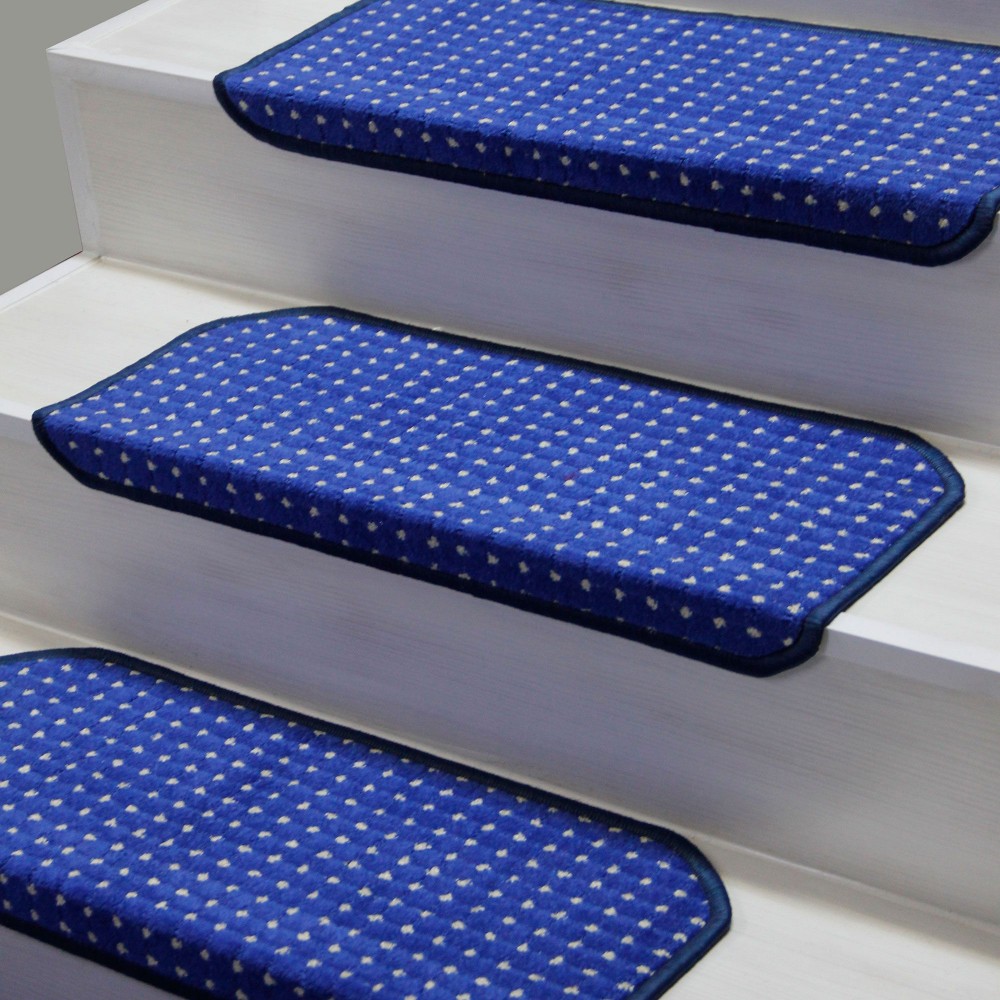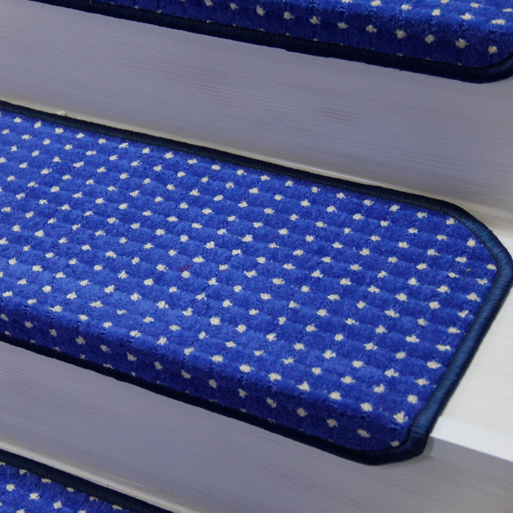 Mavi Renk Kare Model Bukle Halıdan Demonte Basamak Paspasi