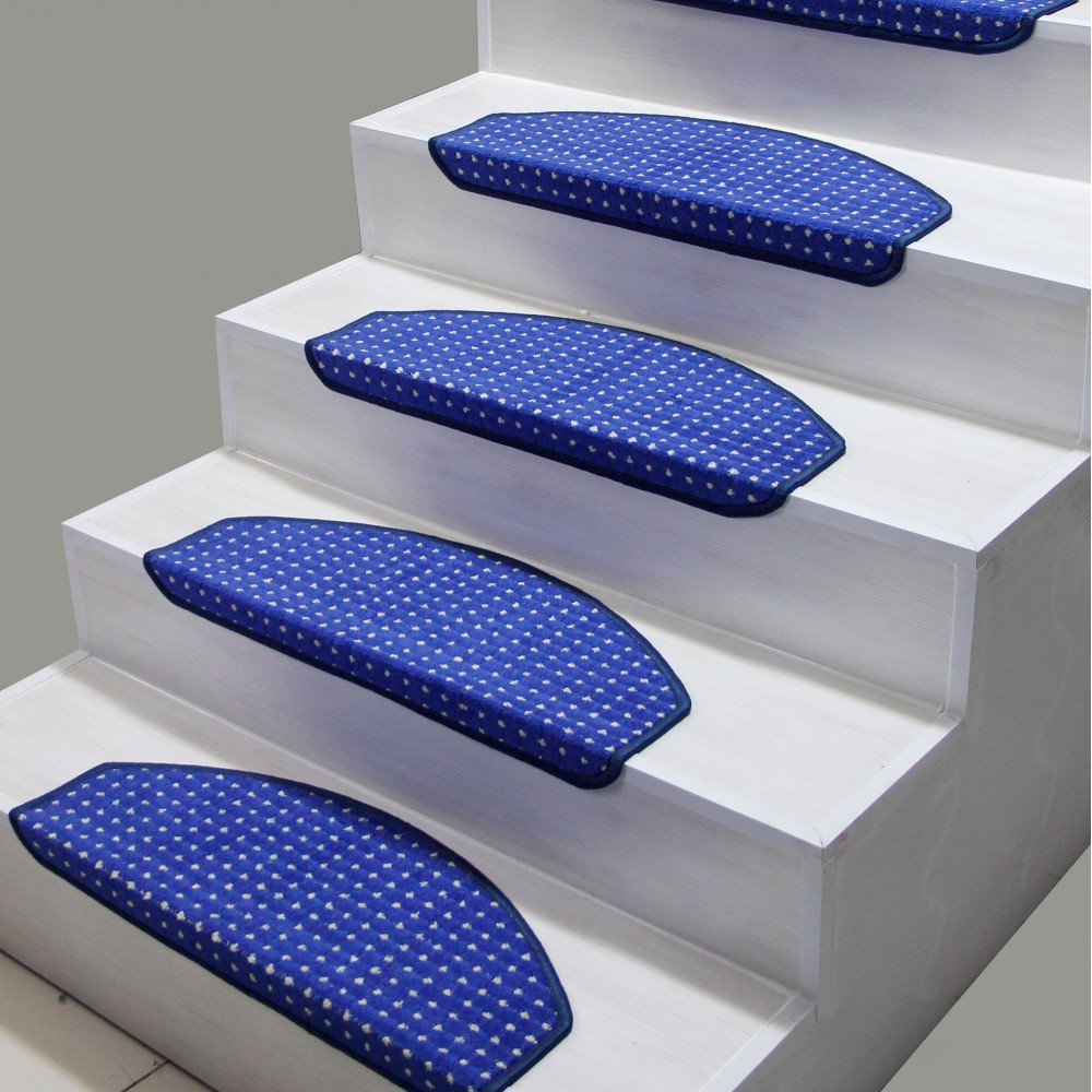 Mavi Renk Oval Model Bukle Halıdan Demonte Basamak Paspasi