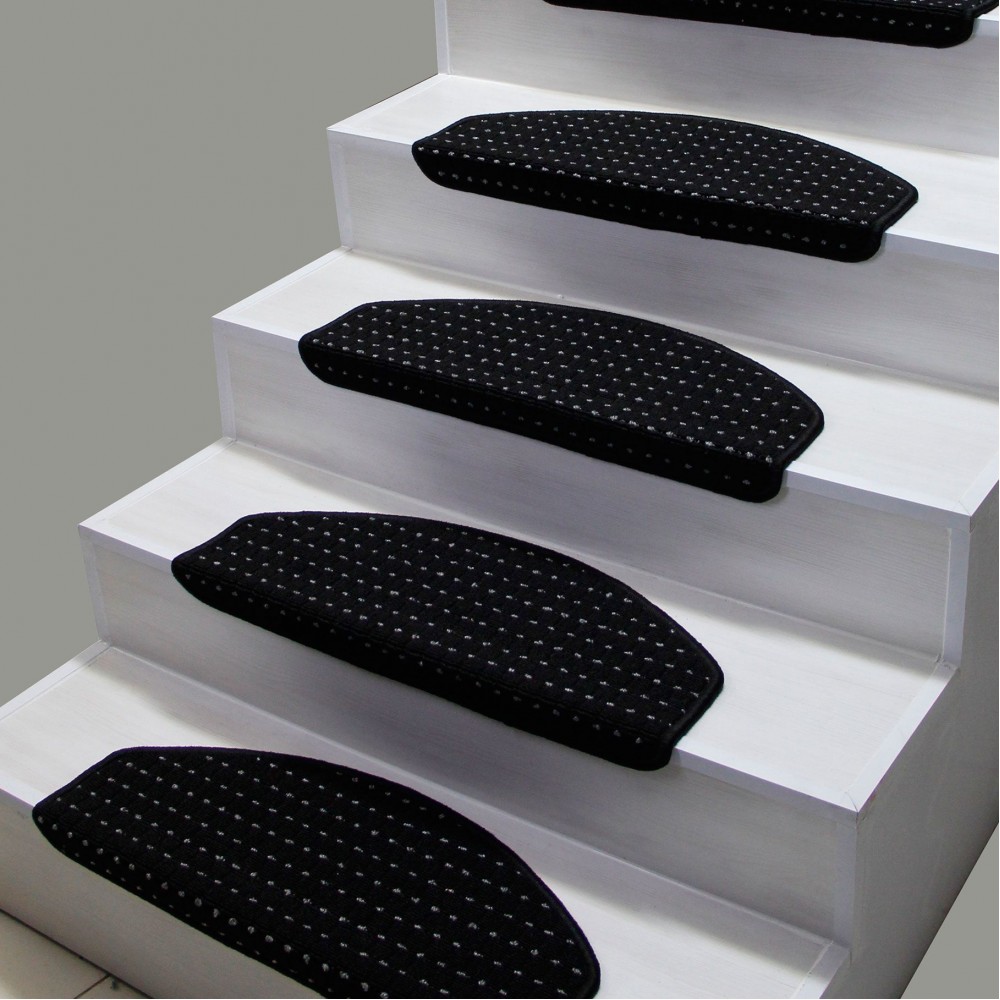 Siyah Renk Oval Model Bukle Halıdan Demonte Basamak Paspasi