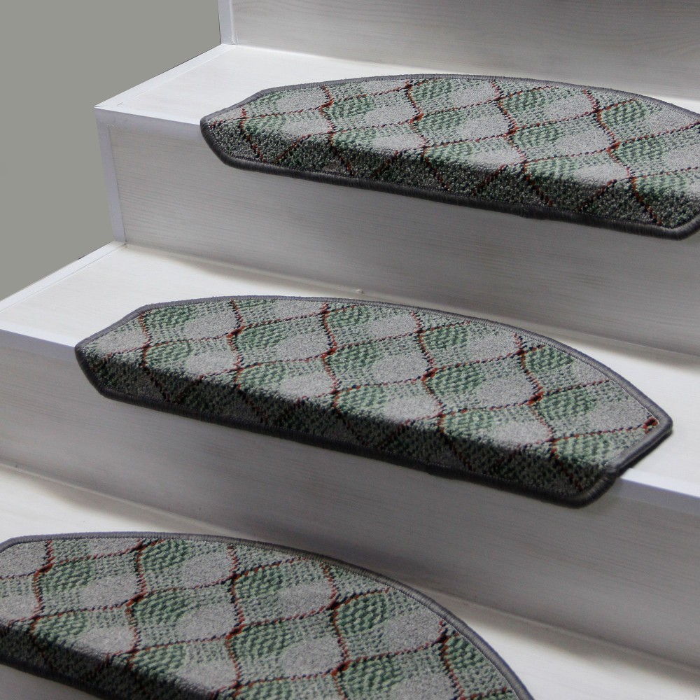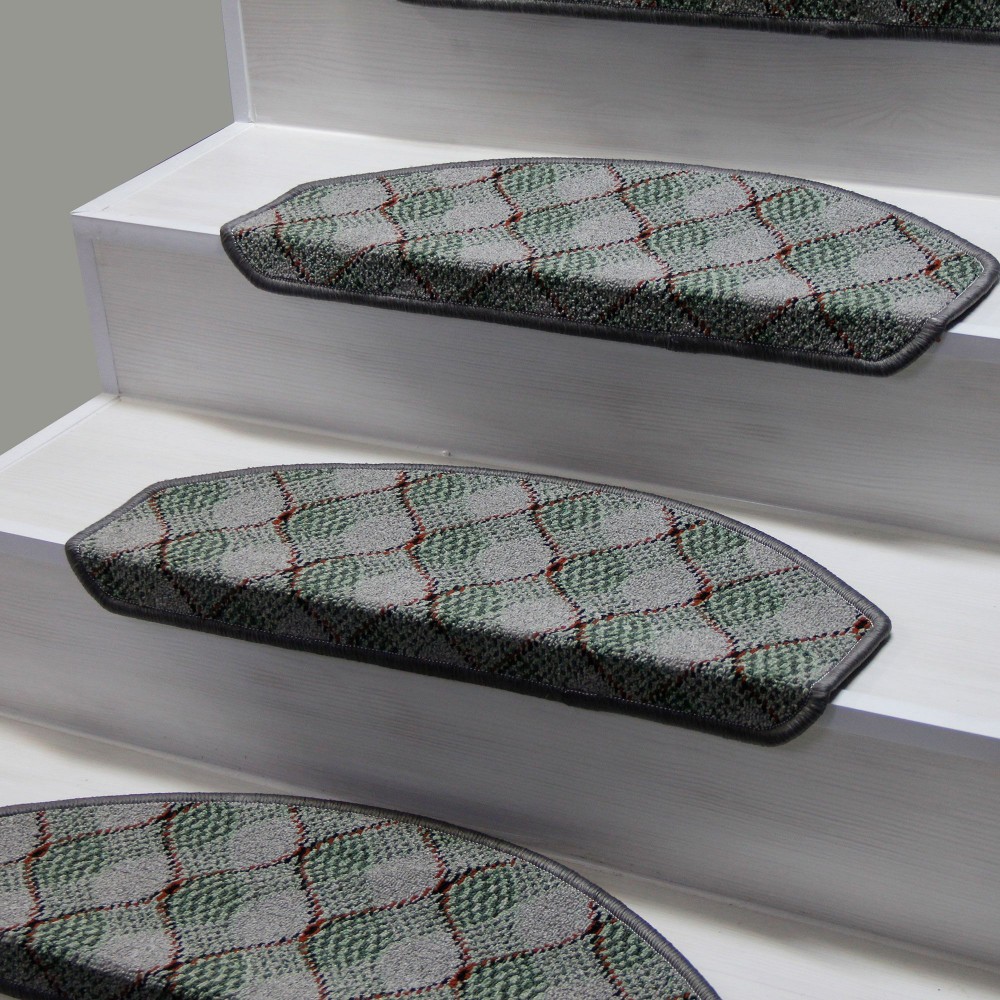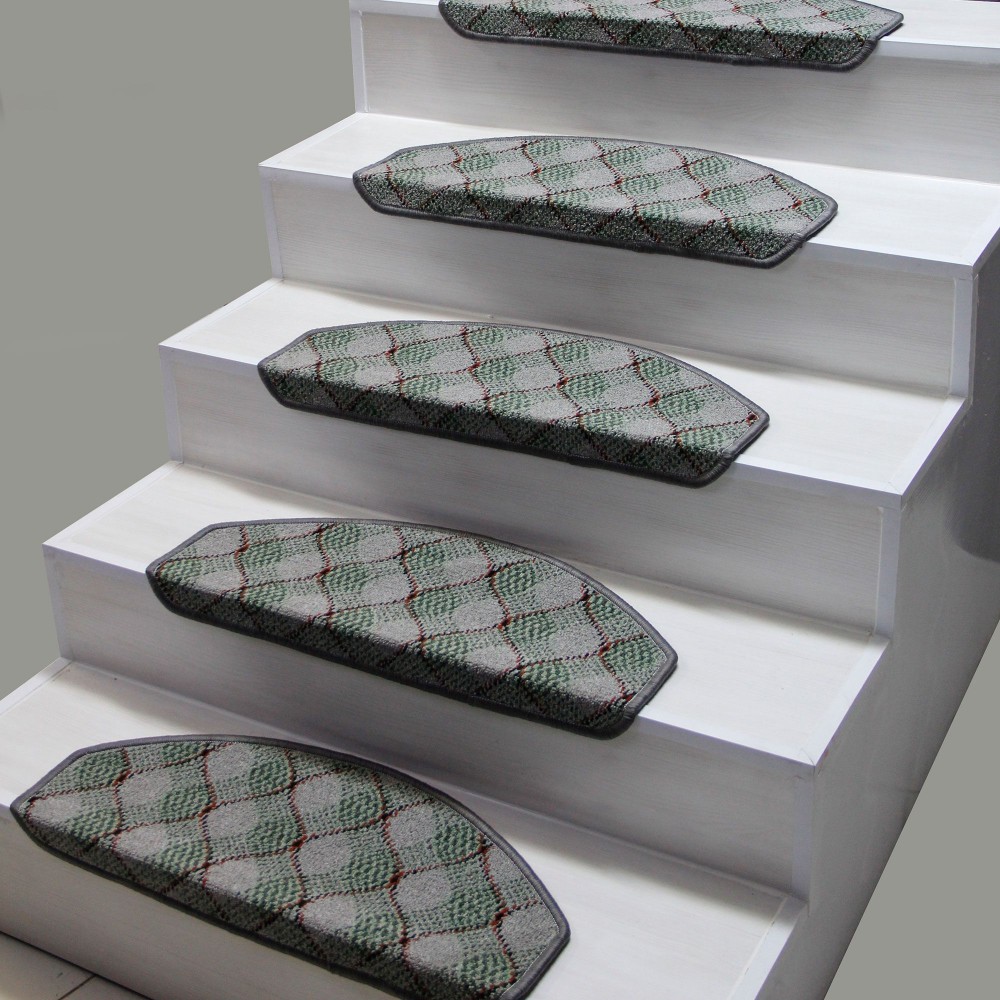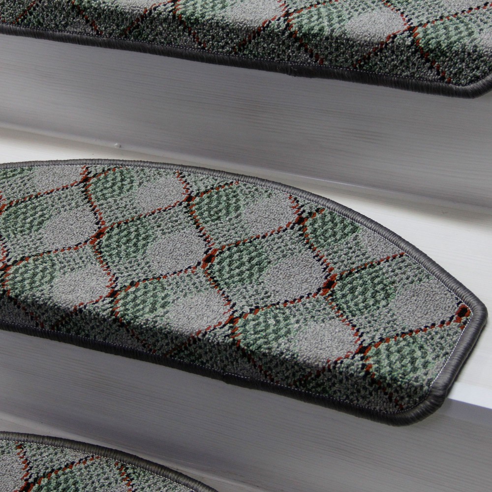 Yeşil Renk Oval Desenli Model Bukle Halıdan Demonte Basamak Paspasi
